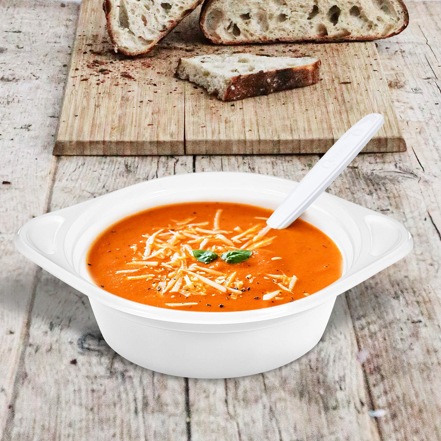 Miska (PP) s uškami biela 500ml [100 ks]