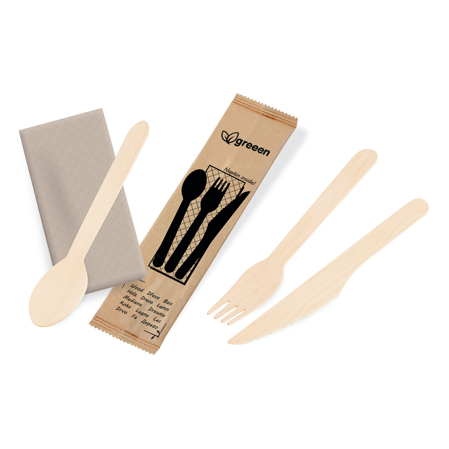 Príborová sada drevená (nôž-vidlička-obrúsok) [60 sád]
