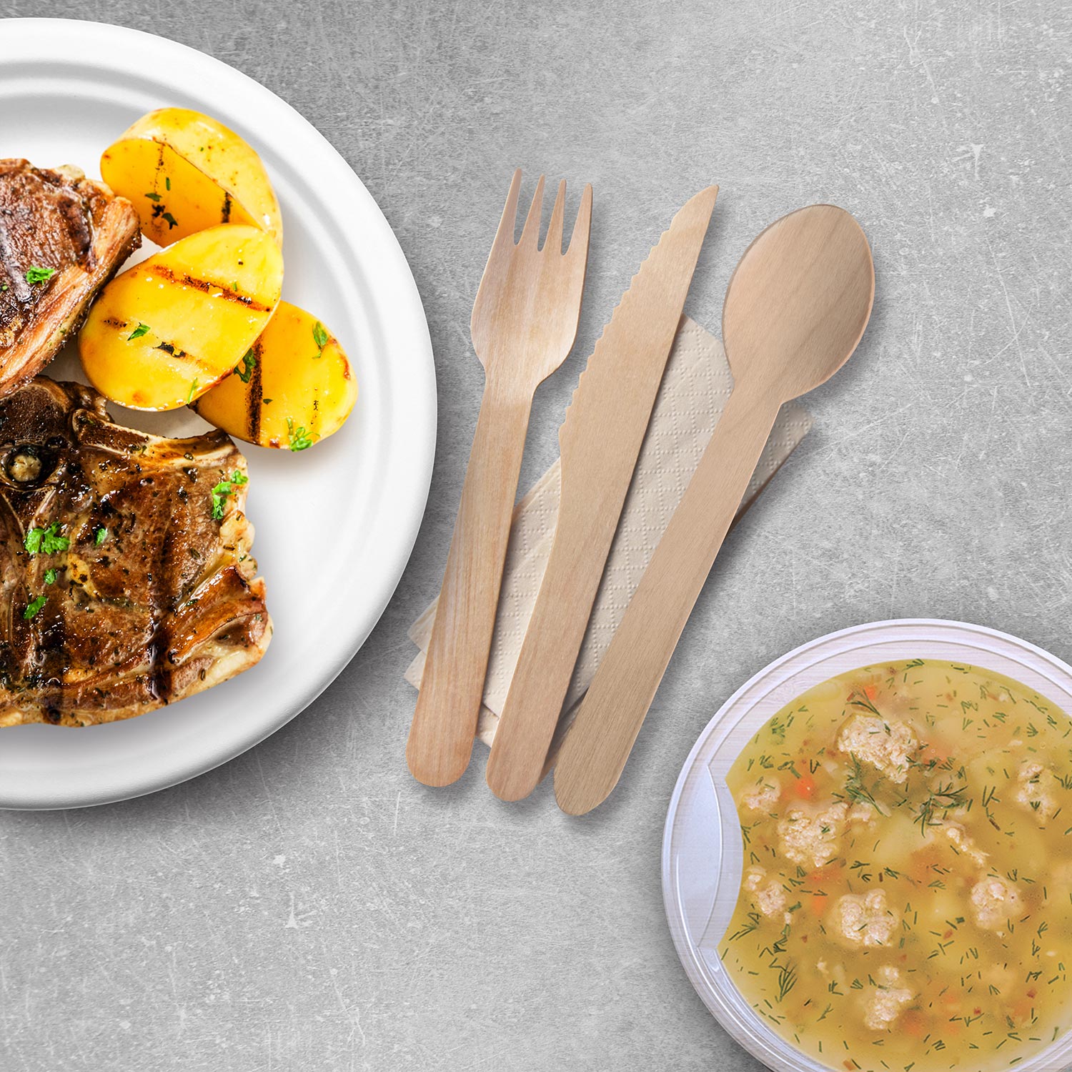 Príborová sada drevená nôž-vidlička-lyžica+obrúsok [50 sád]