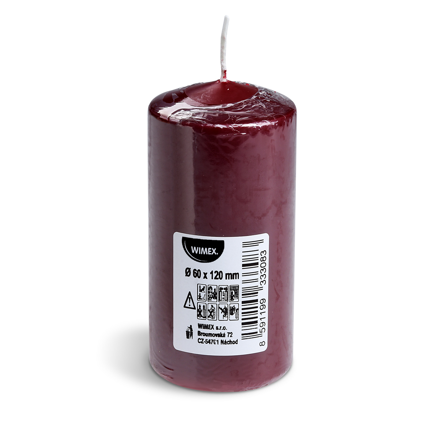 Sviečka valcová bordová O60 x 120 mm [1 ks]