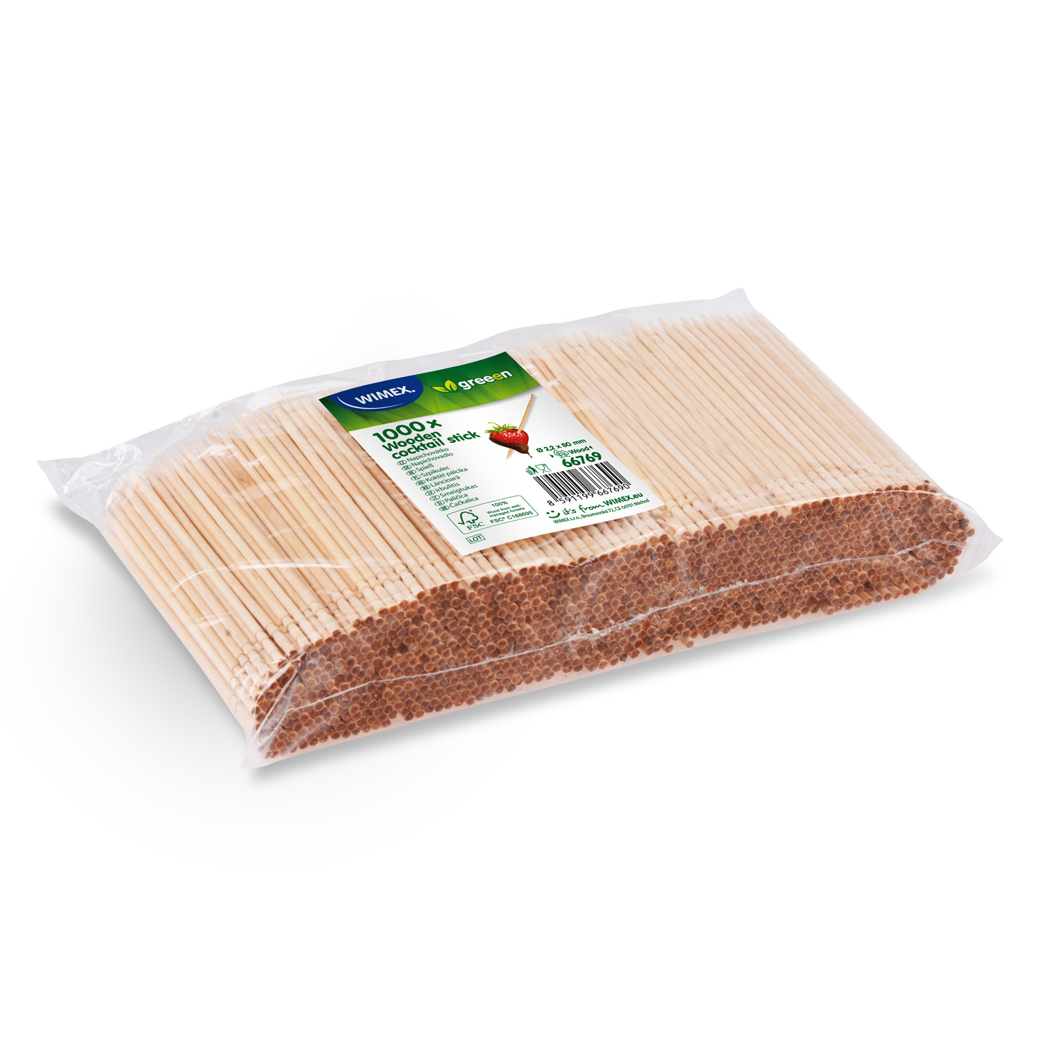 Špáradlo drevené O2 x 65 mm jednotlivo balené v celofáne [1000 ks] zelený box
