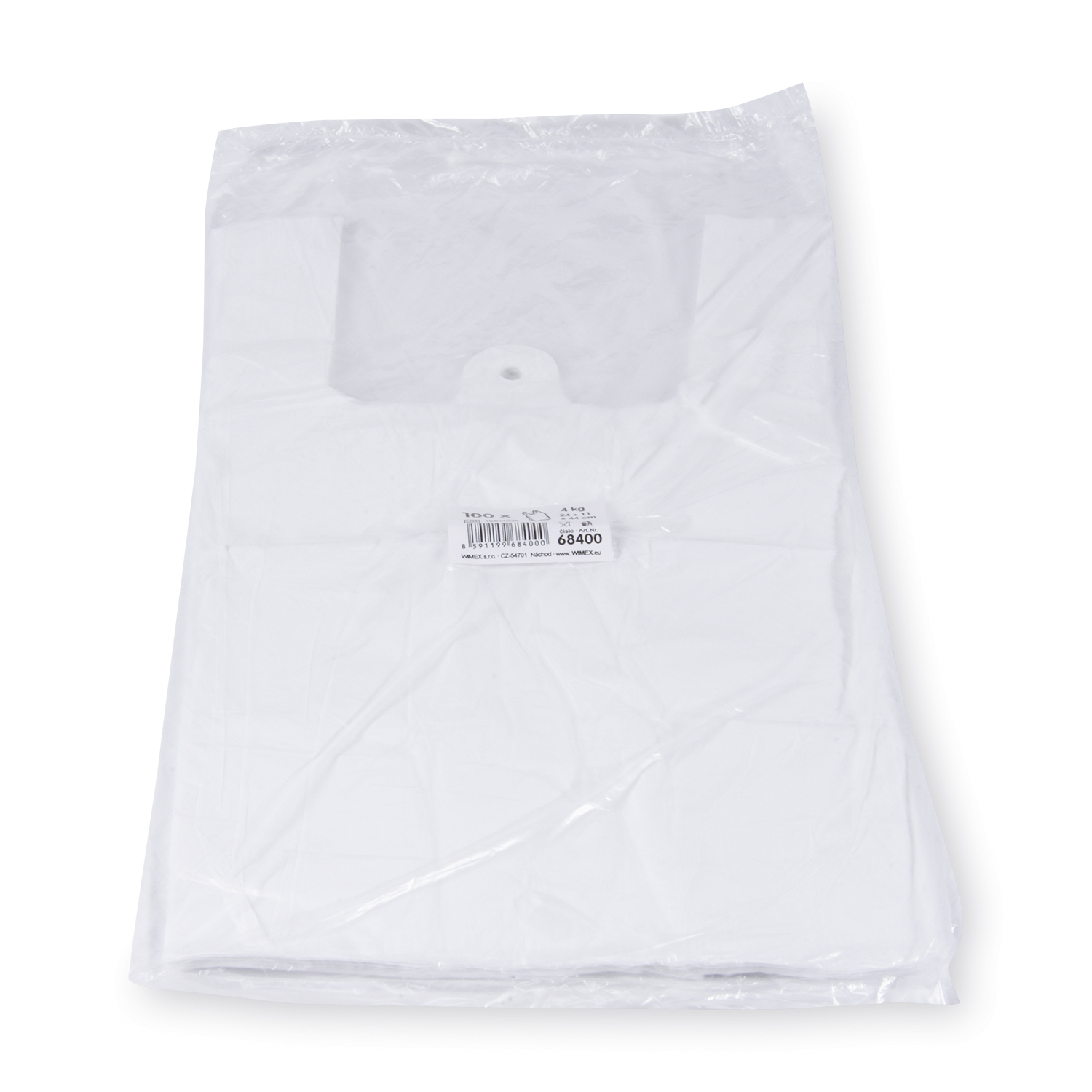 Jednorazová nákupná taška z HDPE materiálu v bielom prevedení s rozmerom 24+11 × 44 cm. Vďaka nosnosti do 4 kg je vhodná na prenášanie ľahších potravín a drobného tovaru. Je pevná, odolná voči pretrhnutiu a praktická na každodenné použitie. Balenie obsahuje 100 kusov.